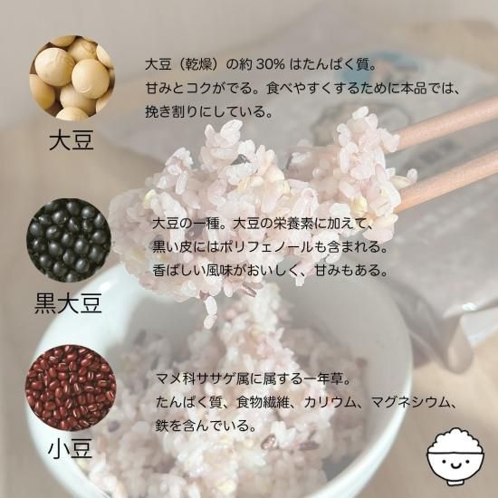 ご飯を炊いた時の色がいい感じ!食べ応えもよくて私の好みにピッタリ。クセなどは一切なく美味しく食べられてリピート確定です!お米に混ぜる以外にも食べ方があって嬉しい商品です。